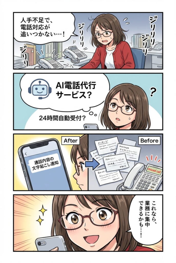 AI電話代行サービスは、電話対応による業務中断を減らし、機会損失を防ぎ、社内共有もしやすくしてくれる有力な手段です。
