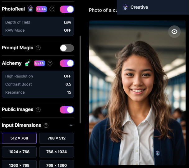 To get started, enable Alchemy then the PhotoReal option and prompt away!