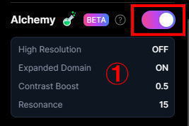 ②High Resolution:これをオンにすると、Alchemyの出力解像度が向上します。高解像度の出力は、拡散プロセスのために通常の解像度の出力とは異なるため、これがアップスケーラーとして機能するとは思わないでください。デフォルトでは、オフになっています。