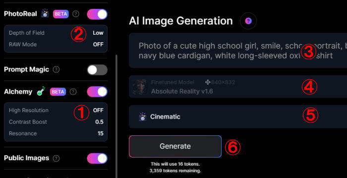 PhotoRealは、Alchemy+PhotoRealで動作するため、有料プランユーザーのみ使える機能です。