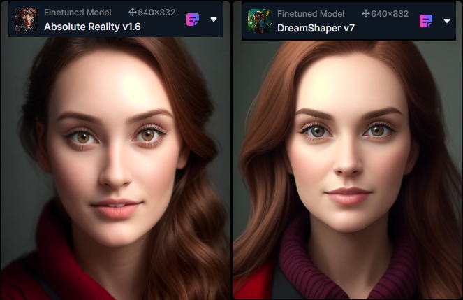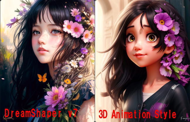 実写に特化したモデルで、DreamShaper v7と同じ人物で比較してみると、アバター感が無くなって現実味がでていると思います。イラストも、詳細なタイプは上手にできますが、かわいいイラストでは、けなくや目などに若干リアリティが出ている感じがします。