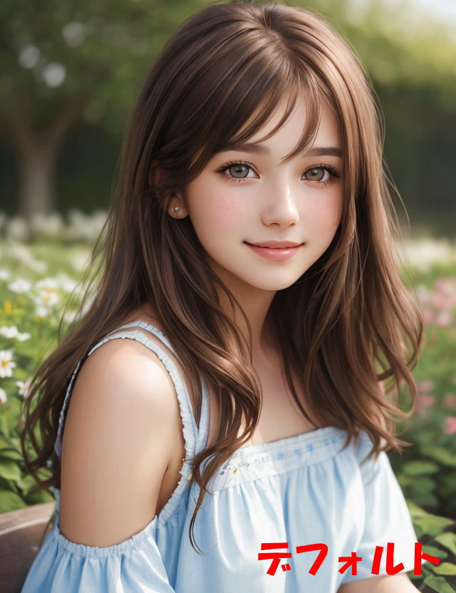 まずは、高級設定は使わないでプロンプトの表現力だけで生成してみました。18才と指定したのですが、ちょっと幼い感じ?
