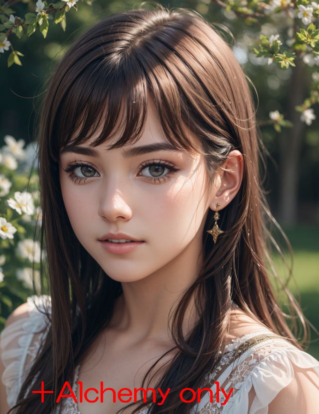 DreamShaper v7に、+Alchemyだけを追加して生成しました。