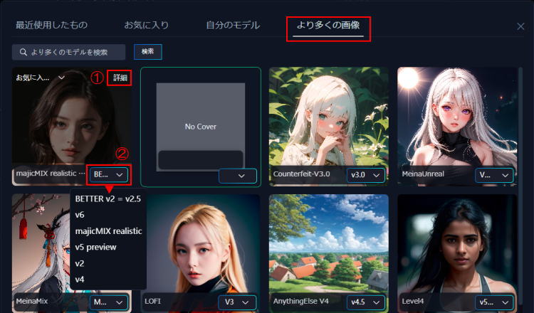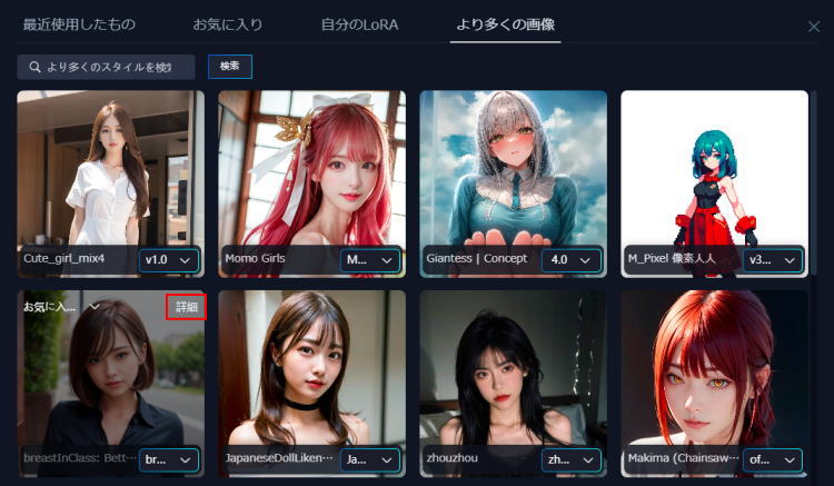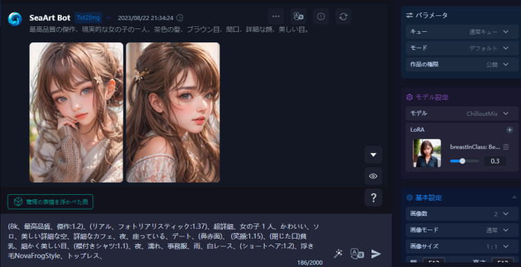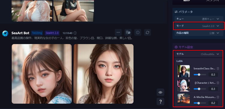 SeaArt.AIでは、ユーザーがLoRAモデルやカスタムスタイルを自由に選べるため、より個性や用途に応じた画像生成が可能です。