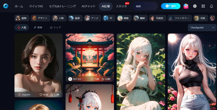 その点、SeaArt.AIはStable Diffusionベースながらも、Web上での利用に最適化されており、専門知識なしで操作できる利便性があります。
