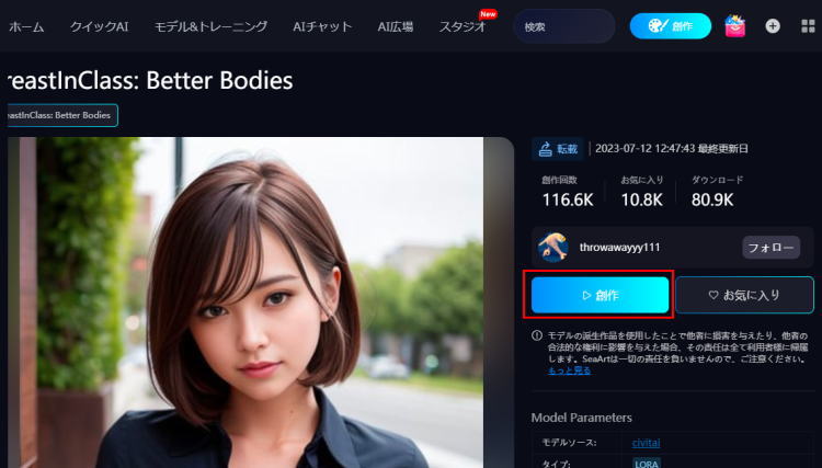 civitaiのサイトに移動して見ます。