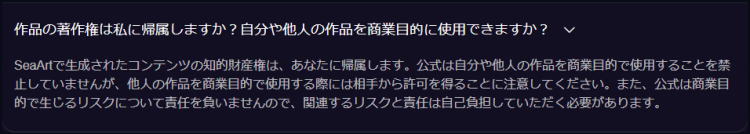 SeaArtの良くある質問に以下の様な文章があります。