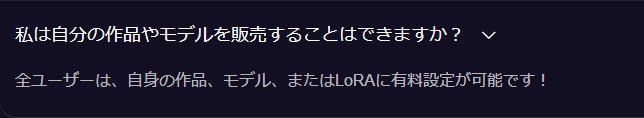 実は、全ユーザーは、自身の作品、モデル、またはLoRAに有料設定が可能です。